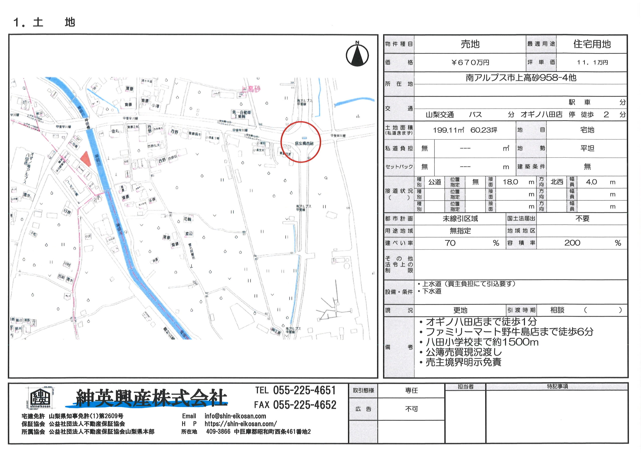 3. 南アルプス市上高砂 売地